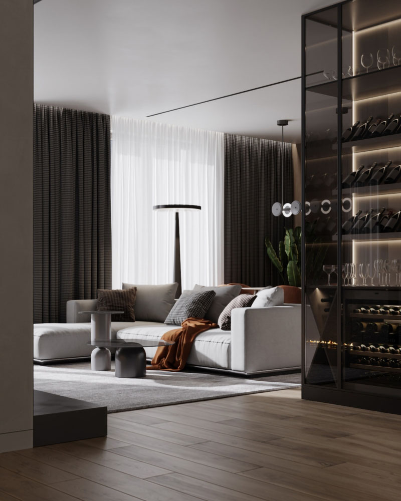 Спокойное и уютное пространство в современном стиле с элементами неоклассики, созданное для идеального отдыха.