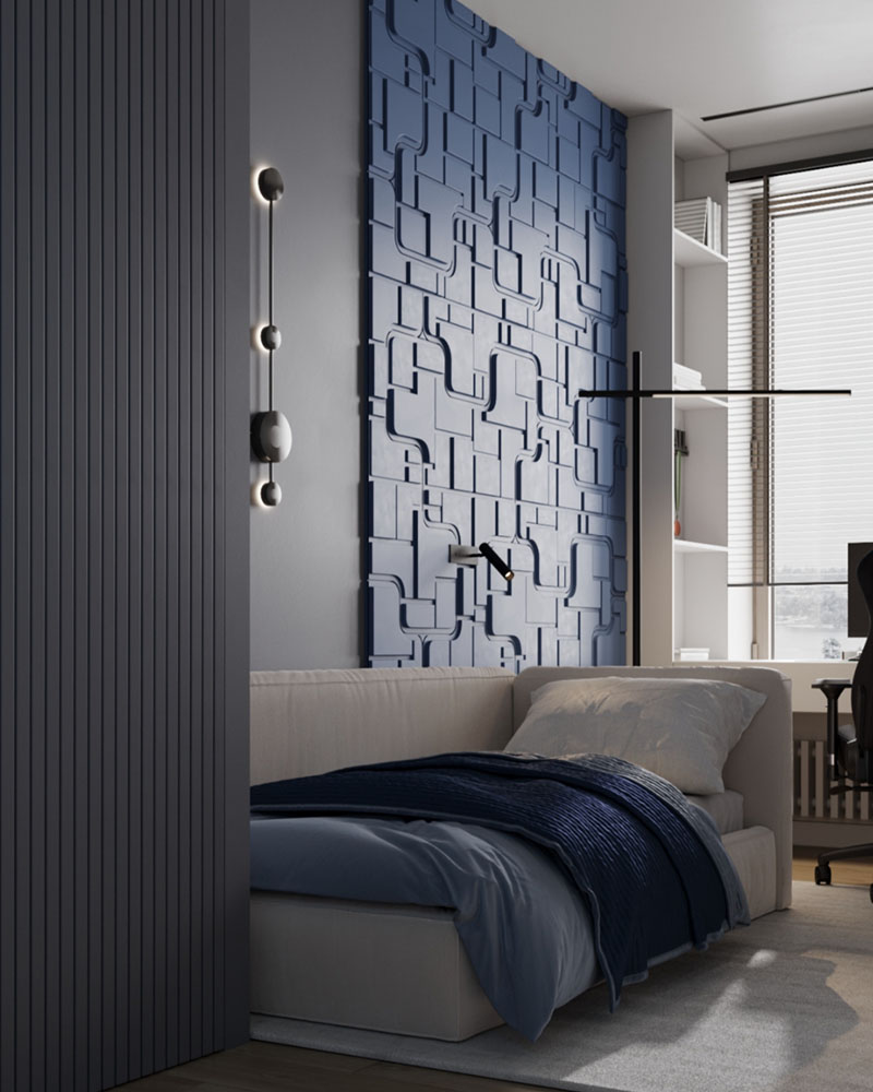 Индивидуальный подход к пространству. Комната в минималистичном и стильном дизайне, с акцентом на функциональность и комфорт.